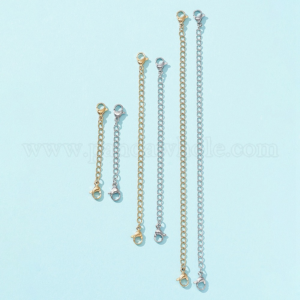 304 удлинитель цепи из нержавеющей стали: длина около 100мм, Кольцо: 4x3x0.6 mm, застежка : 10.5x6.5x3.5 mm, 2 цветов, 1 прядь / цвет, 2 пряди;