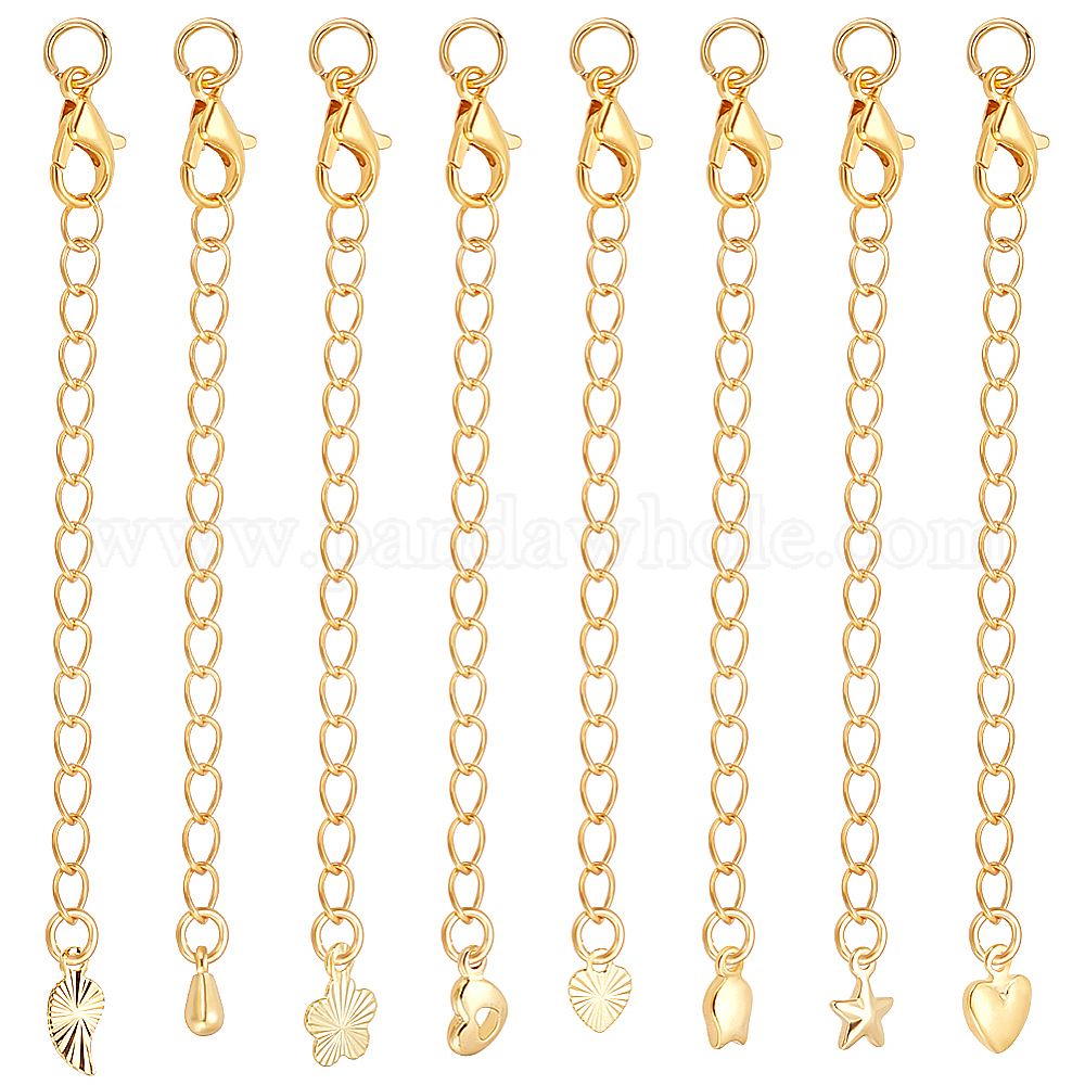 24шт 8 стили латунные удлинители цепи пандуса, концевые цепочки с язычком-цепочкой и застежкой-карабином