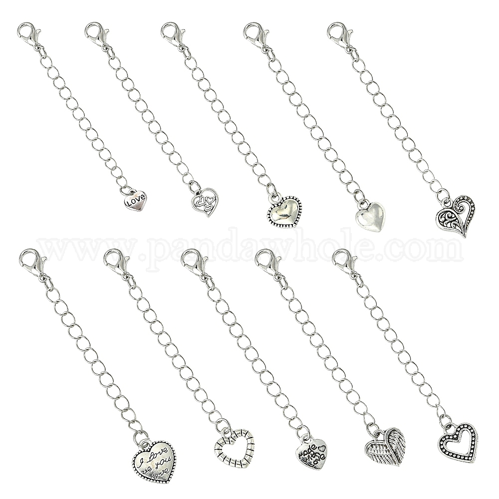 50 шт. 10 стиль удлинитель цепи с железным бордюром, концевые цепочки с застежками-когтями-лобстерами и подвесками в виде сердечек в тибетском стиле