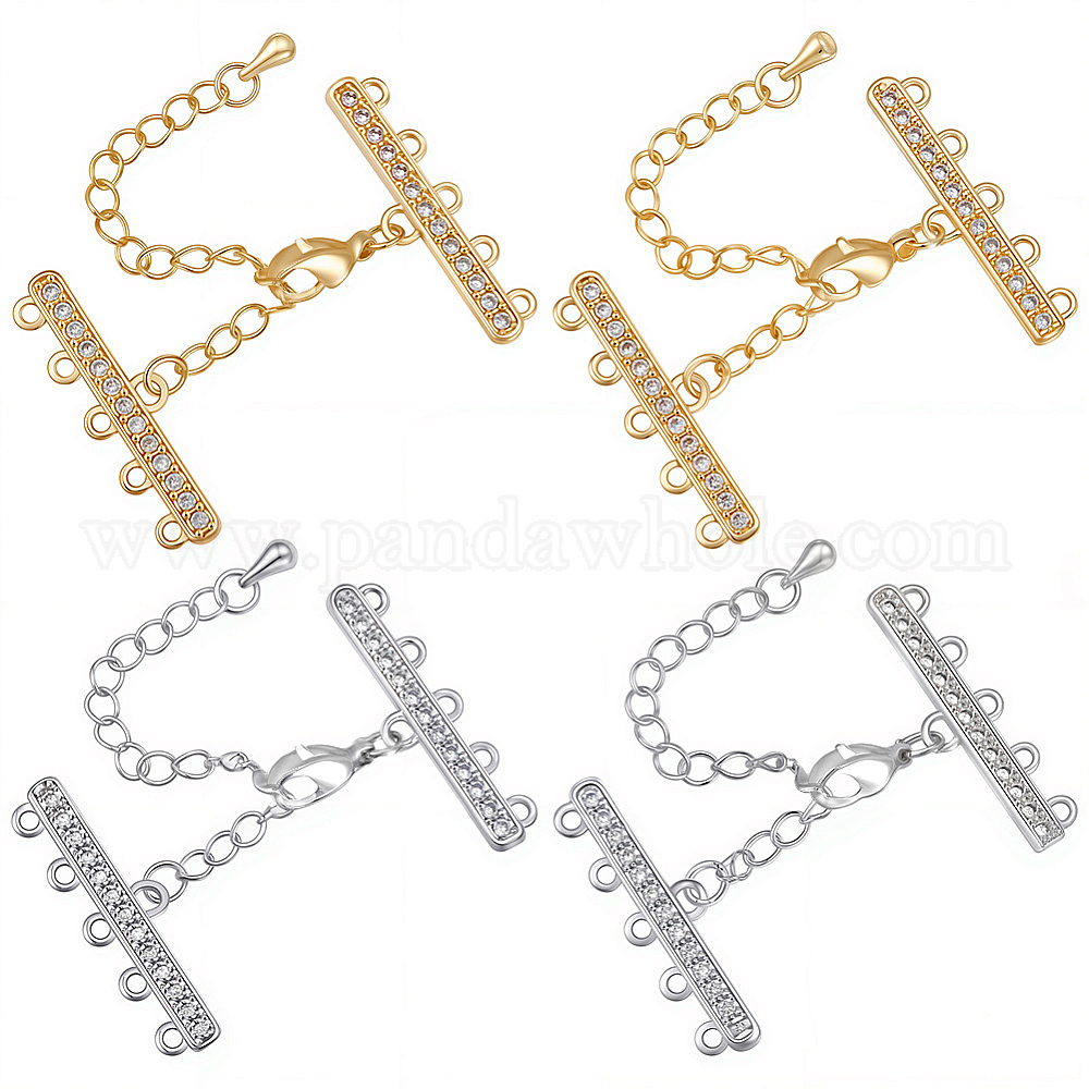 4 наборы 2 цвета латунь микропаве кубический цирконий удлинитель цепочки, застежки для ожерелья, с 5 нитями 10 и концами застежки омара, без никеля , прозрачные