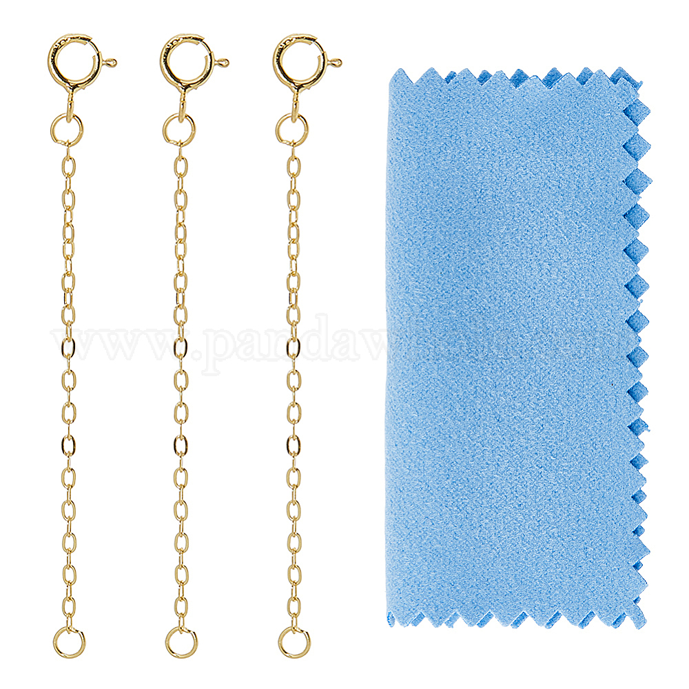 • Золотой 3шт 925 удлинитель цепи из стерлингового серебра, концевые цепи, с пружинными зажимами, с замшевой тканью из поликарбоната квадратной серебряной полировальной салфеткой, золотые, 1 мм