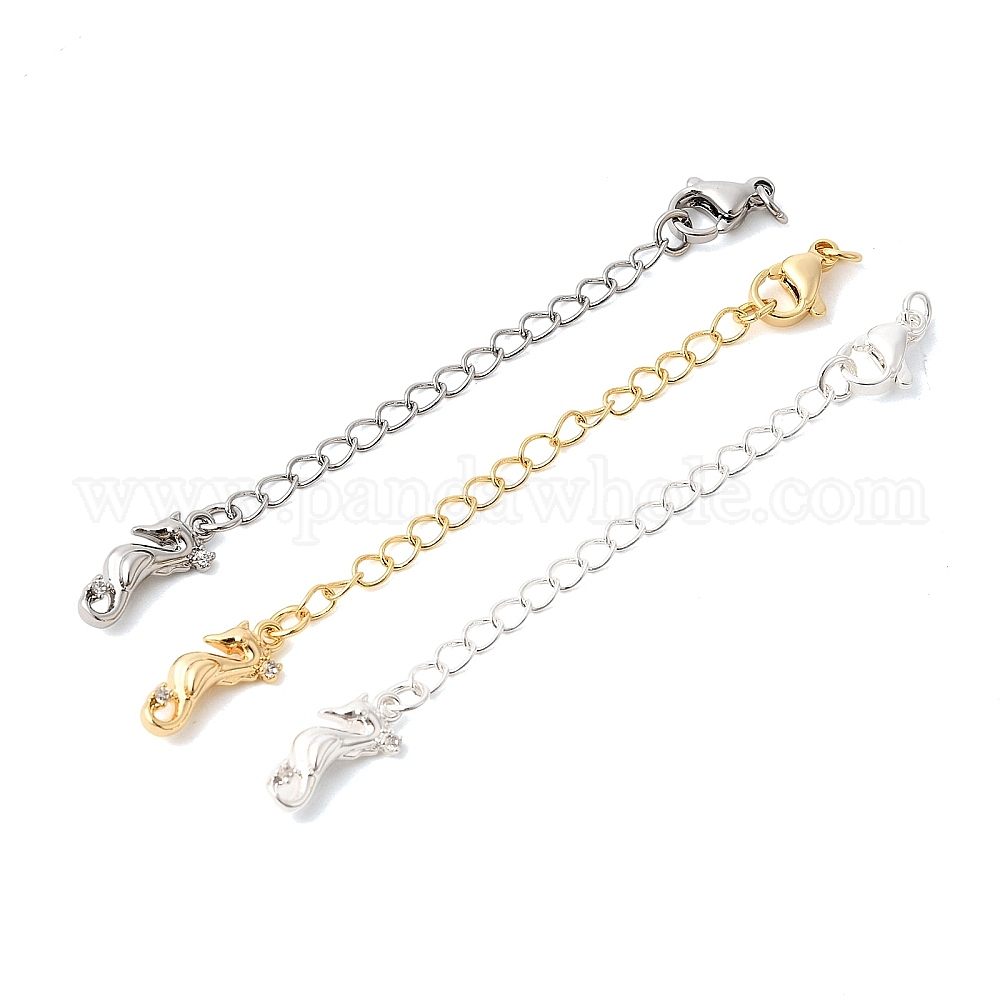 Удлинитель цепи из прозрачного кубического циркония из латуни с микропаве, цепочки с застежками-карабинами и подвесками в виде морских коньков