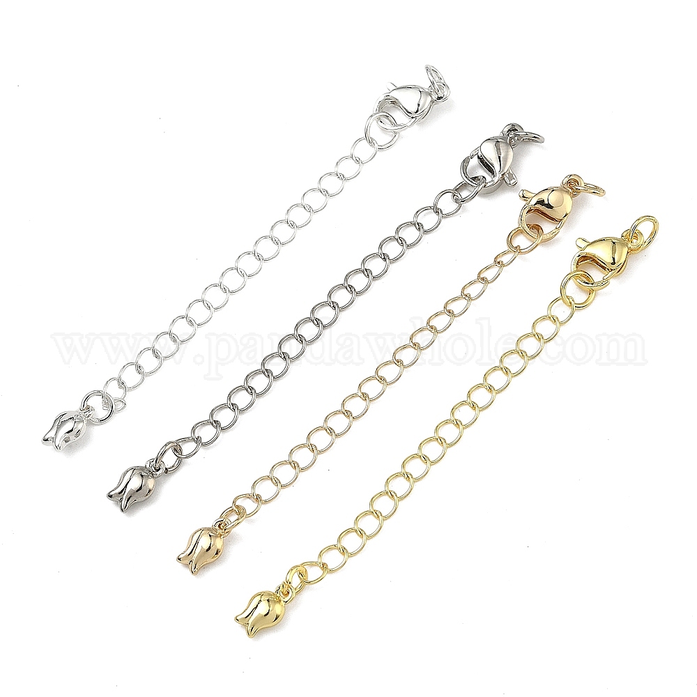 • Платина Латунный удлинитель бордюрной цепи, цепочки с застежками-карабинами и подвесками в виде тюльпанов, платина, 74 мм