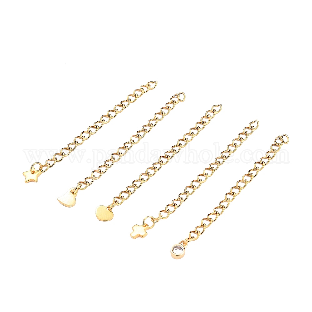 • Золотой Вакуумное покрытие pvd 304 удлинитель цепей из нержавеющей стали, с подвесками из латуни и фианитами 304 и подвесками из нержавеющей стали, долговечный, разнообразные, золотые, 58 мм