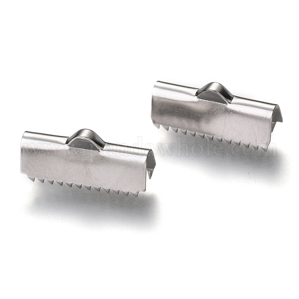 • Нержавеющая Сталь Цвет Не тускнеет 304 концы ленты из нержавеющей стали с обжимом, прямоугольные, цвет нержавеющей стали, 9.5x20x6 мм, отверстие : 1x1 мм, 4 мм внутренним диаметром