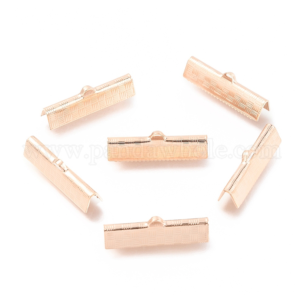 • Розовое Золото 304 концы обжимные ленты нержавеющие, розовое золото , 7x25x5.5 мм, отверстие : 2.5x1.5 мм