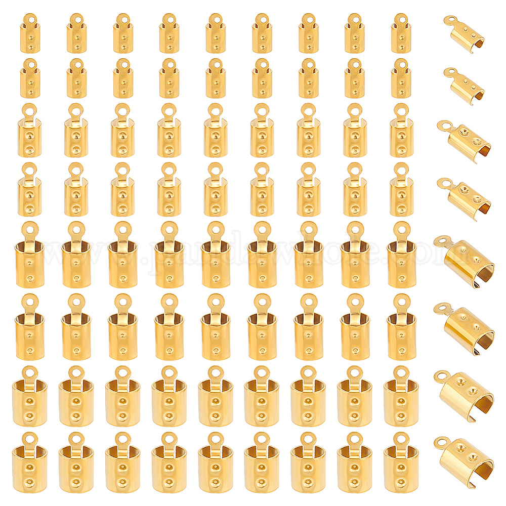 80 шт. 4 размер ионного покрытия (ip) 201 наконечник шнура из нержавеющей стали, Складывающиеся обжимные концы