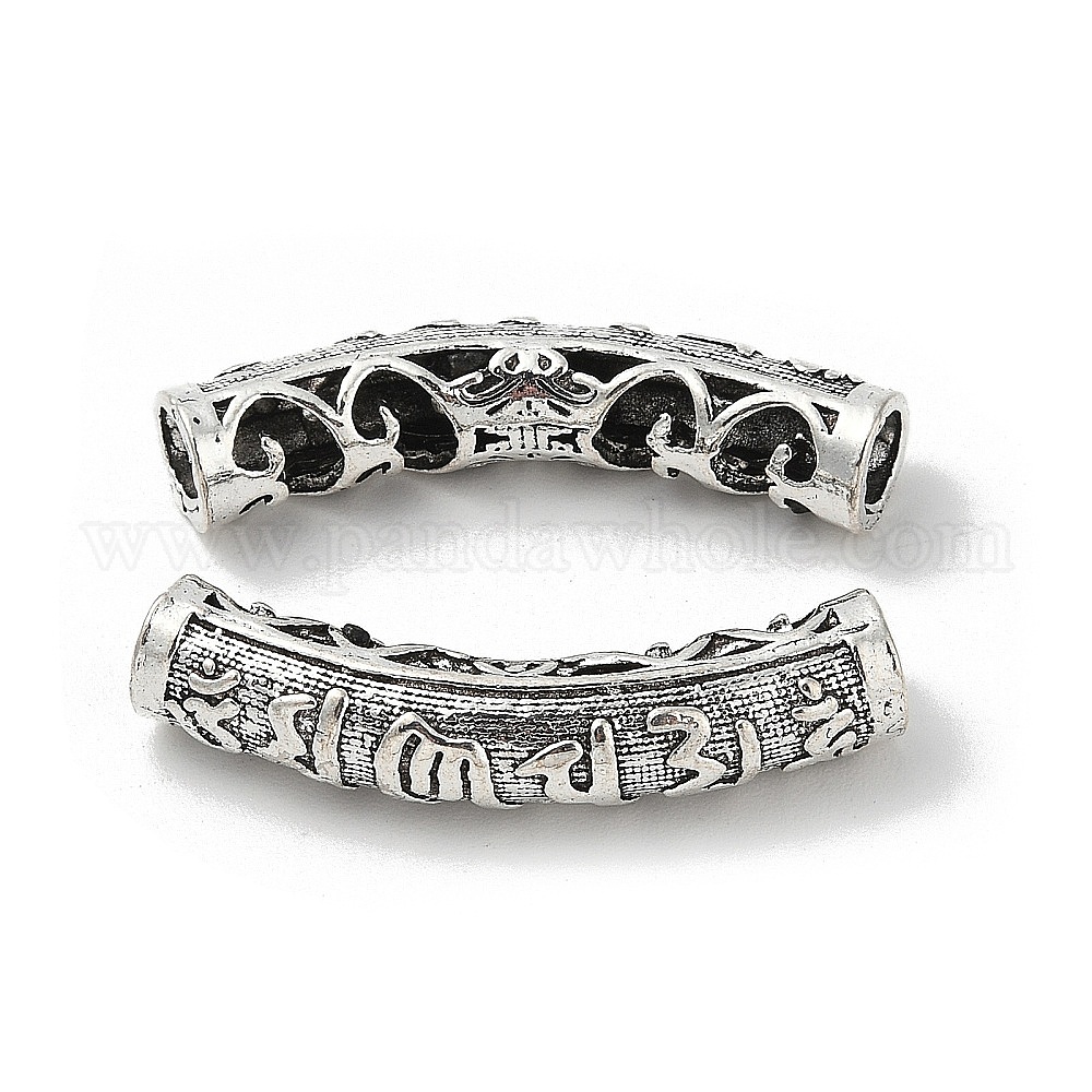 • Античное Серебро Тибетский стиль конечные сплава шнур шапки, дуга окружности, античное серебро, 38.5x7.5 мм, отверстие : 4.5 мм