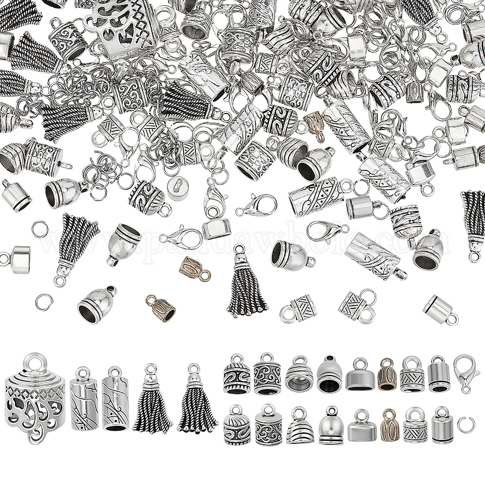 114 шт. 11 стили, концы шнура из сплава в тибетском стиле, Торцевые крышки, без кадмия и без свинца, с 57шт. карабинами и 114шт. соединительным кольцом