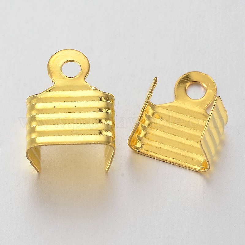 Латунные складные обжимы, загибаем концы шнура, 8.5x7 мм, отверстие : 1 мм