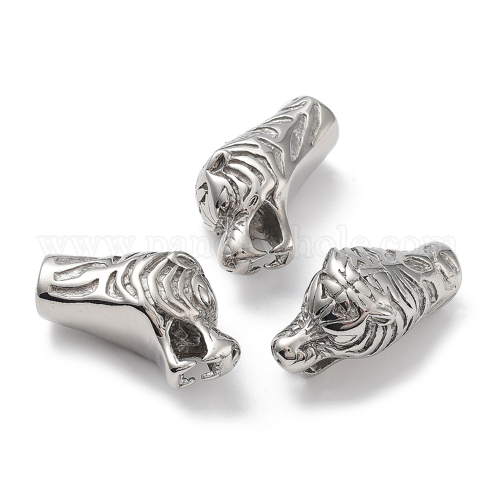 • Нержавеющая Сталь Цвет Устойчивы к потускнению 304 наконечники шнура из нержавеющей стали, для изготовления кожаных браслетов, голова тигра, цвет нержавеющей стали, 35x17x19 мм, отверстие : 8 мм