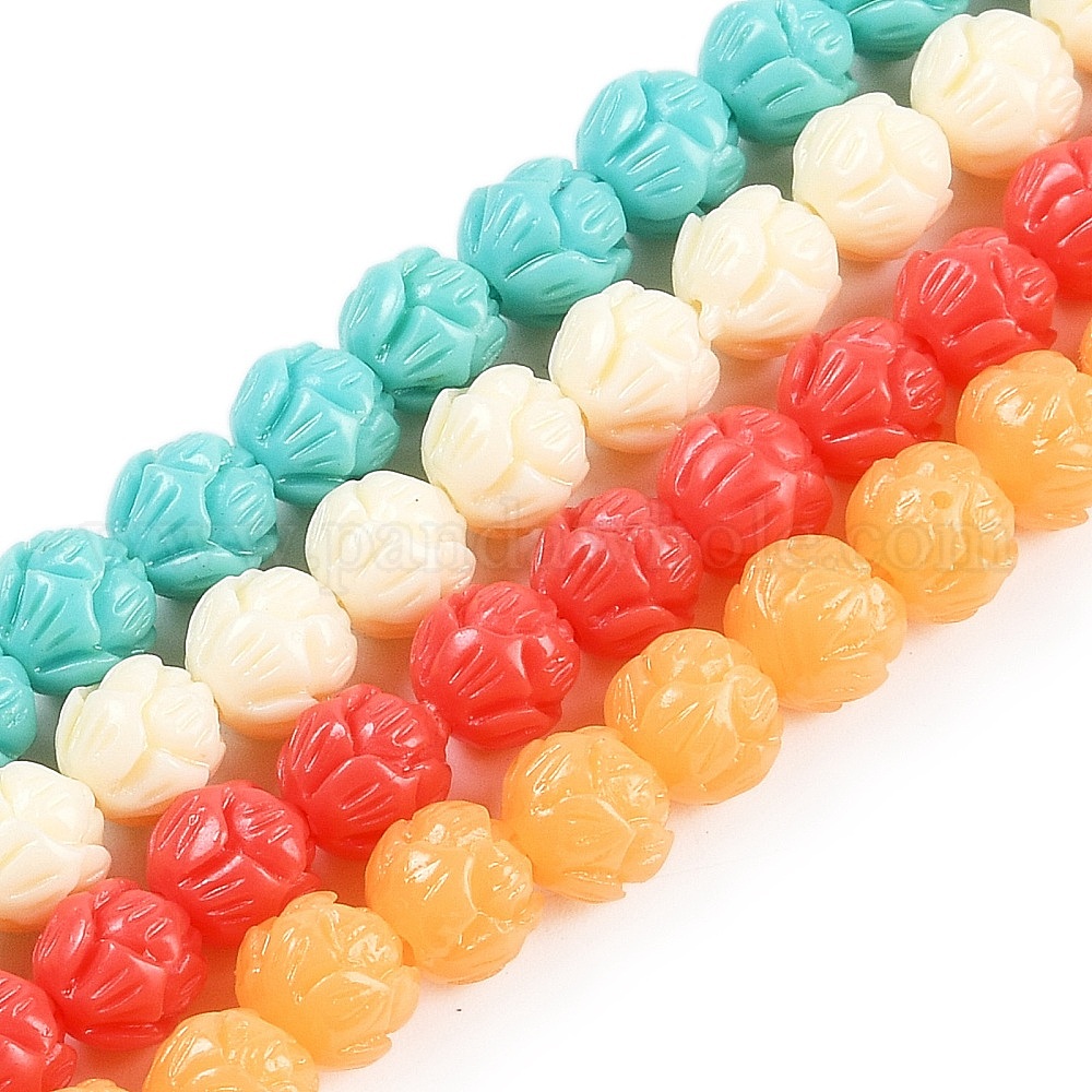Нити резных бусин из синтетического коралла, окрашенные, цветок