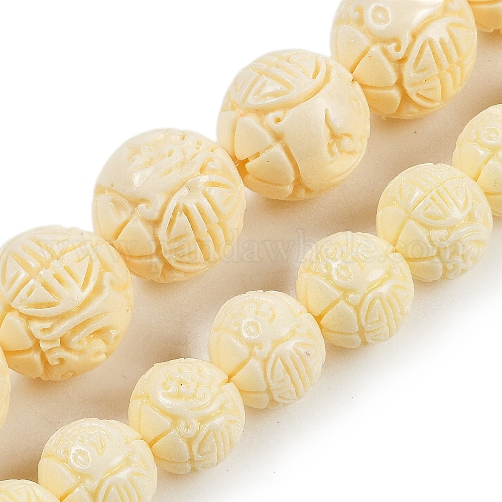 • Лимонный шифон Нити резных бусин из синтетического коралла, окрашенные, круглые, лимонный шифон, 11 мм, отверстие : 1.4 мм, около 35 шт / нитка, 14.57 дюйм (37 см)