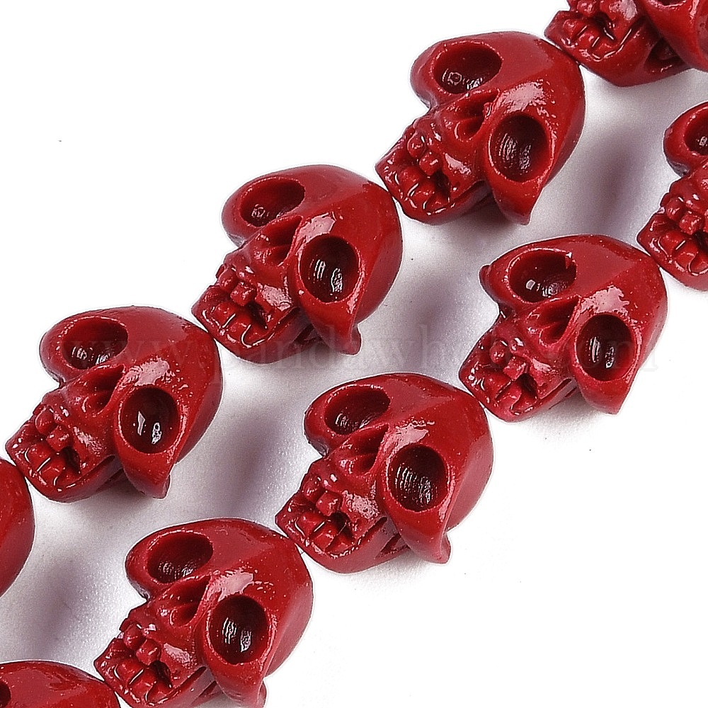 Нити резных бусин из синтетического коралла, окрашенные, череп