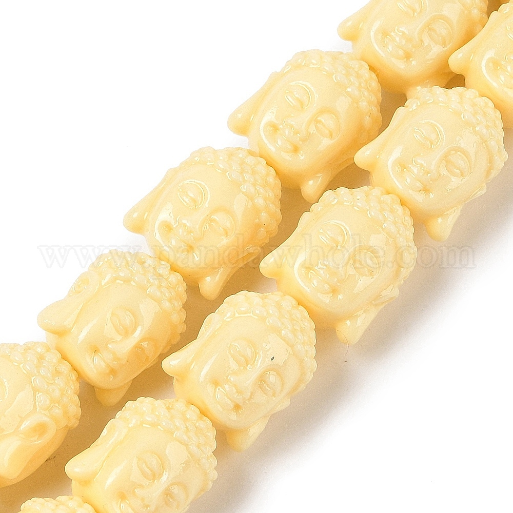 Нити резных бусин из синтетического коралла, окрашенные, Голова Будды