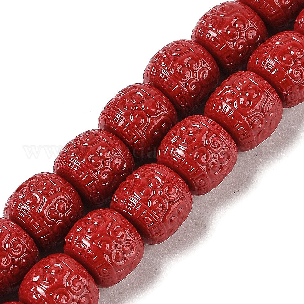 Нити резных бусин из синтетического коралла, окрашенные, баррель