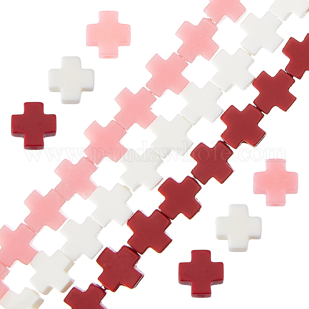 3 нити 3 цветные синтетические коралловые бусины нити, окрашенные, крестик