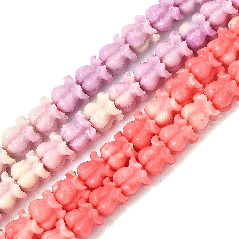 Нити резных бусин синтетического коралла, цветок