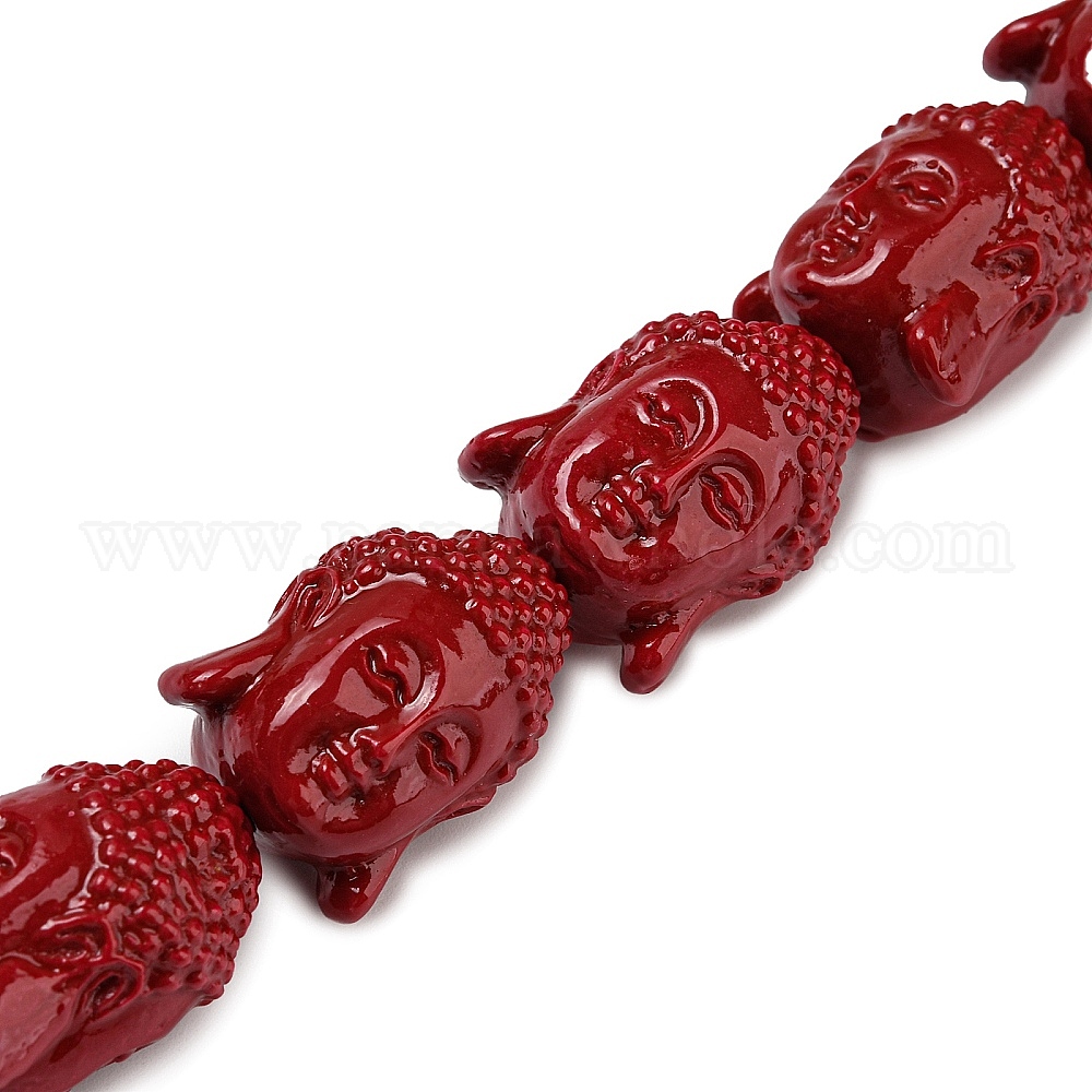 Окрашенные синтетическое коралловые головы Будды бисер пряди, 25x20x18 мм, отверстие : 1 мм, около 13 шт / нитка, 18.5 дюйм