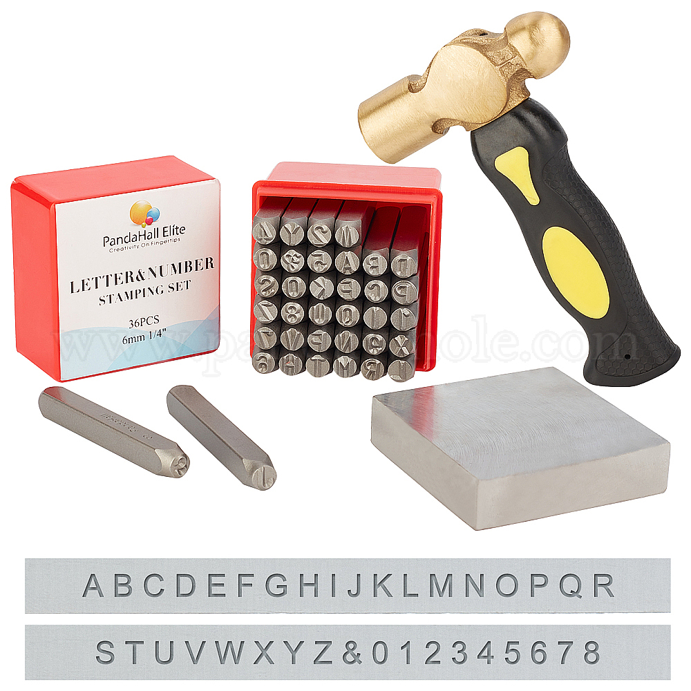 • Черный Письмо ~ Z, штампы железных печатей с номером 0~8 и амперсандом, латунные молотки, золотой молоток квадратные железные наковальни верстаки, чёрные, 63x8 мм, буква и цифра: 6мм, 1box