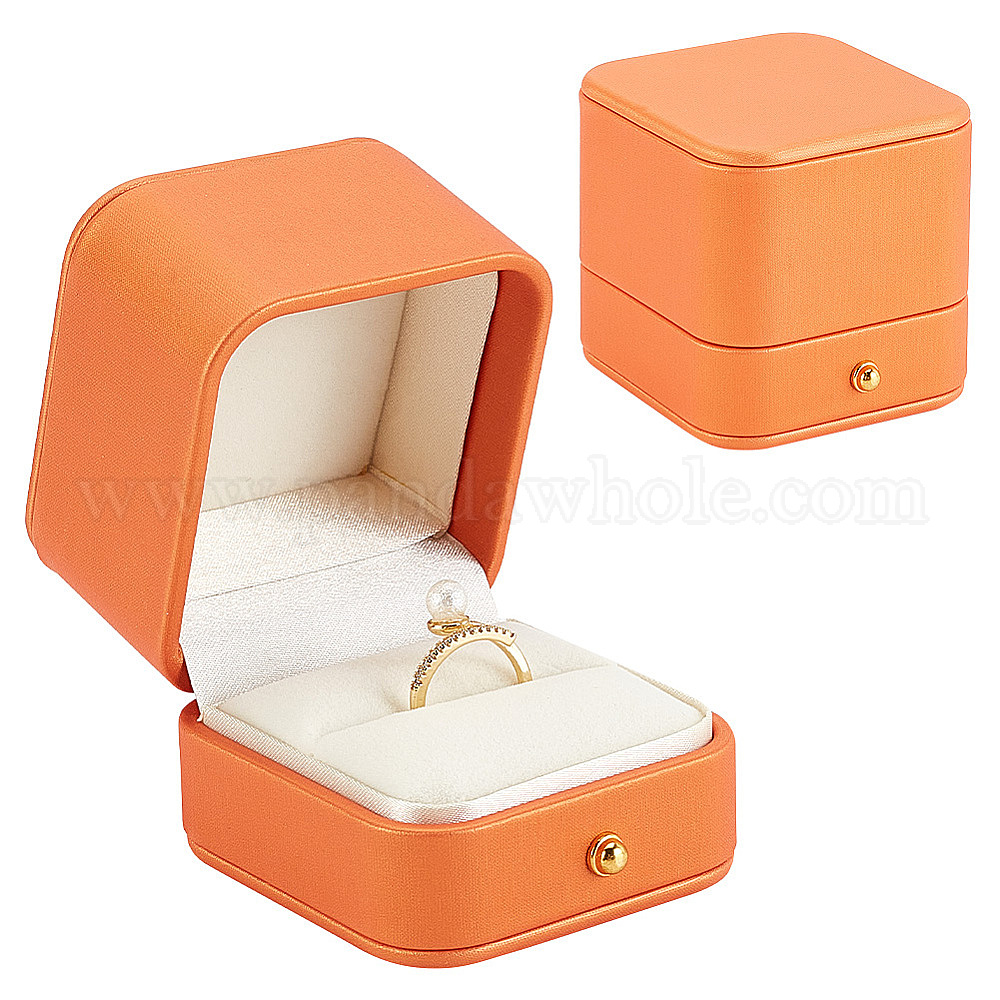 Шкатулка для драгоценностей из искусственной кожи, Подарочный футляр для хранения колец на палец с металлическими застежками золотистого цвета, прямоугольные