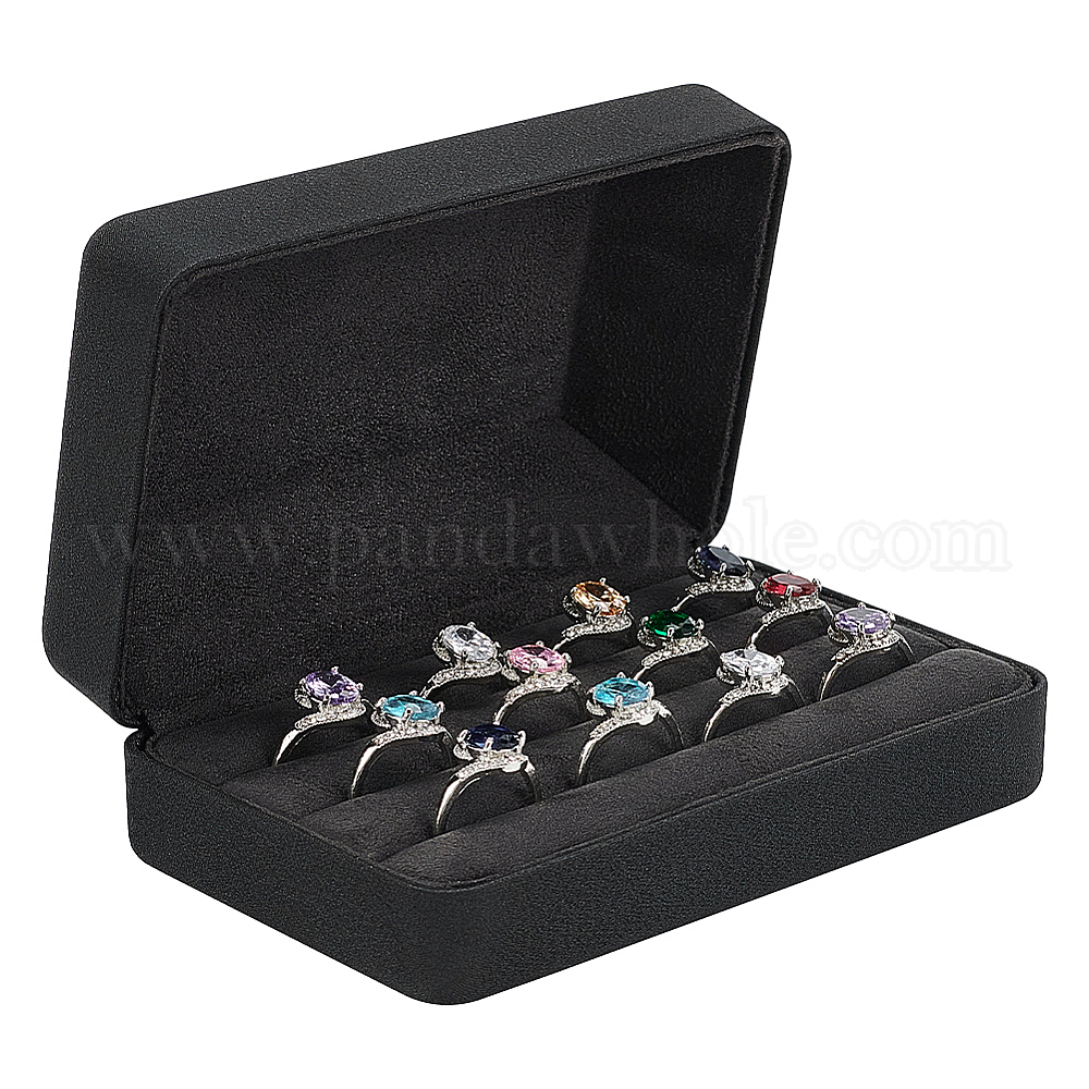 Прямоугольные коробки для хранения колец из искусственной кожи с бархатной внутренней частью