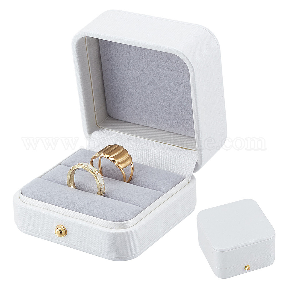 Коробки для хранения парных колец из искусственной кожи с бархатной внутренней частью, квадратный