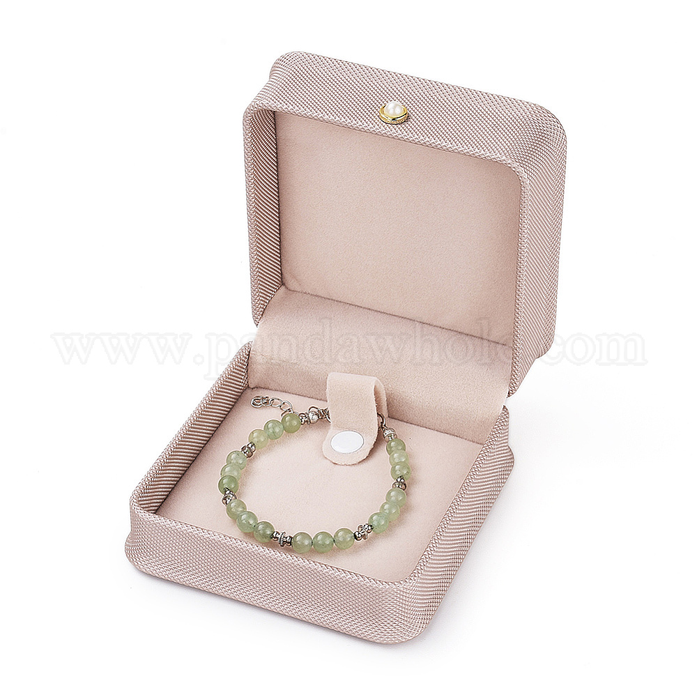 Браслет из искусственной кожи / подарочные коробки для браслетов, с железной и пластиковой пуговицей из искусственного жемчуга и бархатом внутри, для свадьбы, футляр для хранения ювелирных изделий