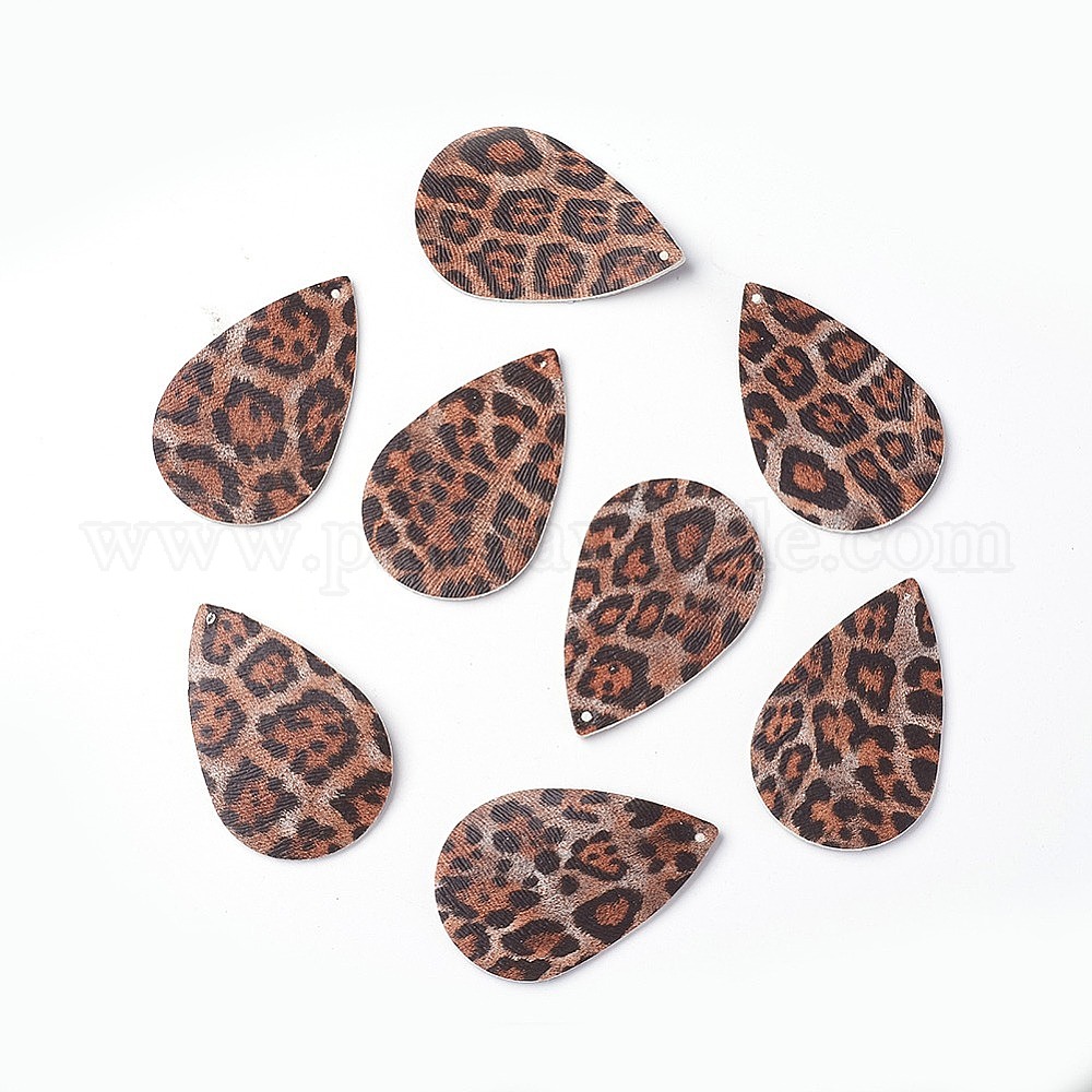 • Разноцветный Большие кожаные подвески, слеза, рисунок для леопарда, красочный, 56x36x1.8 мм, отверстие : 2 мм