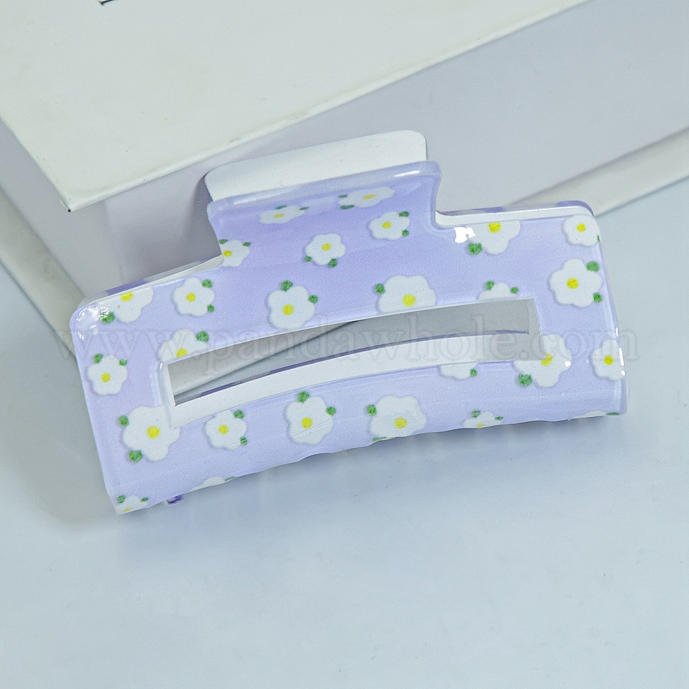 Прямоугольные заколки из пвх с цветочным принтом, с железной фурнитурой, заколки-бананы, аксессуары для волос для женщин и девочек