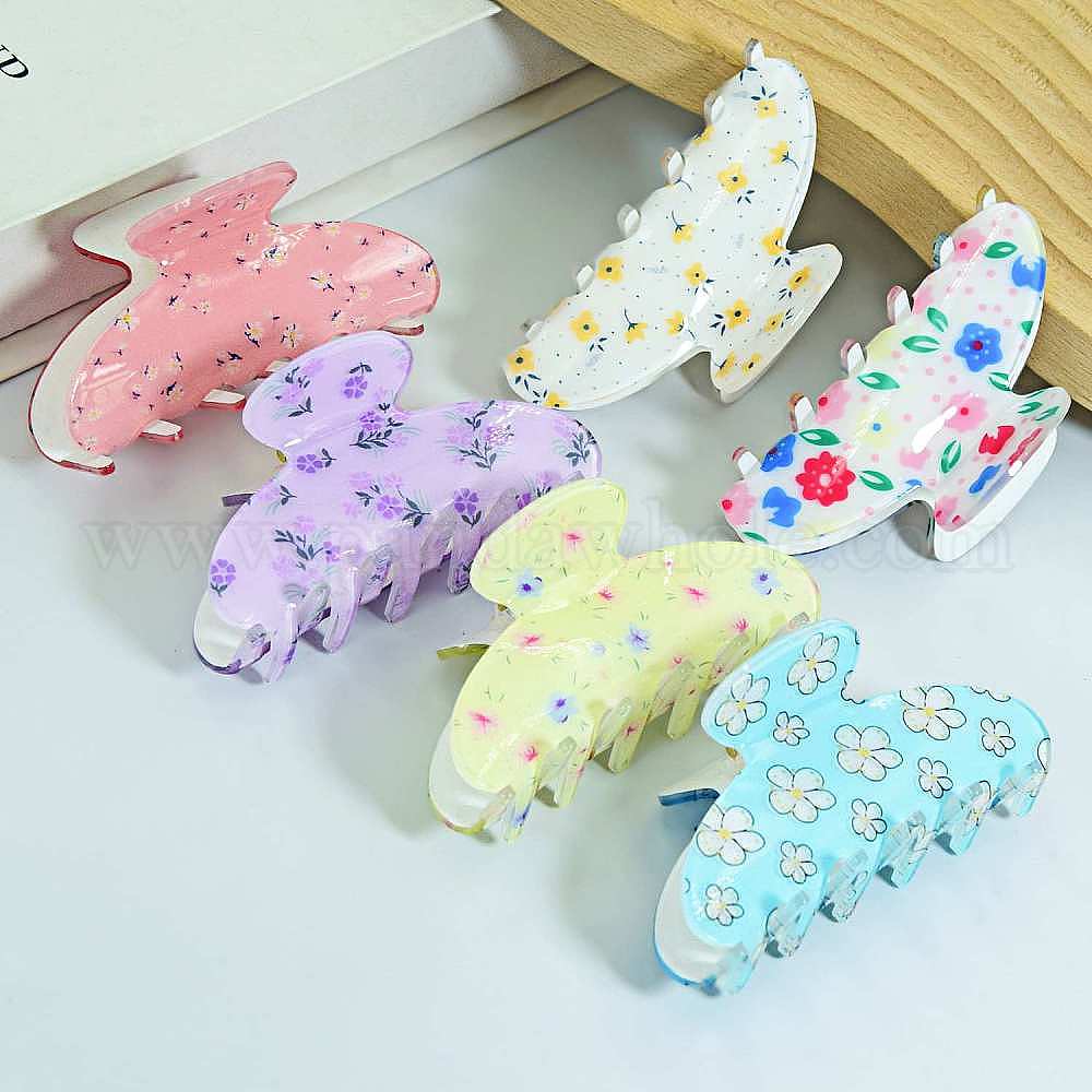 Акриловые заколки с большими когтями для волос с цветочным узором, для девушек с густыми волосами