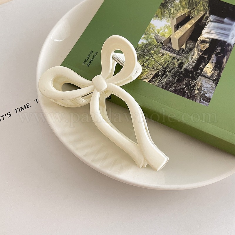 • Молочно-белый Шикарная заколка для волос с бантиком-бабочкой – элегантно, стильный, аксессуар для волос.