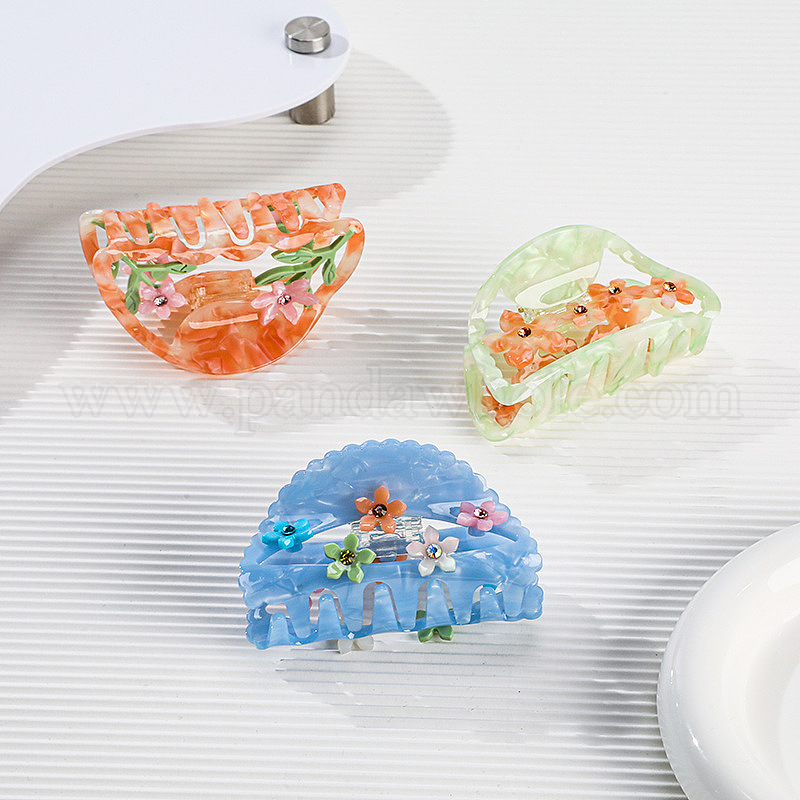 Веерная форма, цветочный узор, ацетат целлюлозы (смола), заколки для волос в виде когтей, аксессуары для волос для девочек и женщин