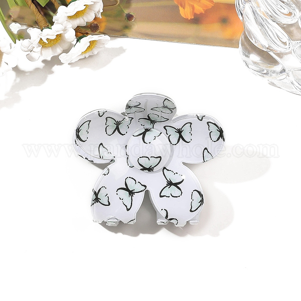 • Гейнсборо Заколки для волос из ПВХ с цветком и бабочкой, аксессуары для волос для женщин и девочек, светло-серые, 70x60 мм