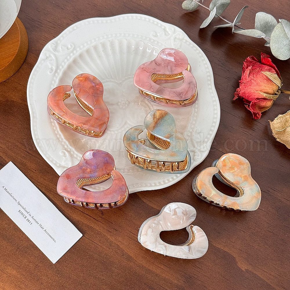 Заколки для волос из ацетата целлюлозы и железных когтей, аксессуары для волос для женщин и девочек, сердце