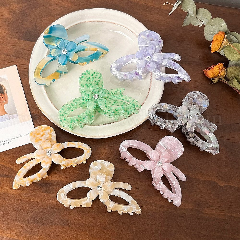 Заколки для волос в форме когтей из ацетата целлюлозы, аксессуары для волос со стразами для женщин и девочек, бантом