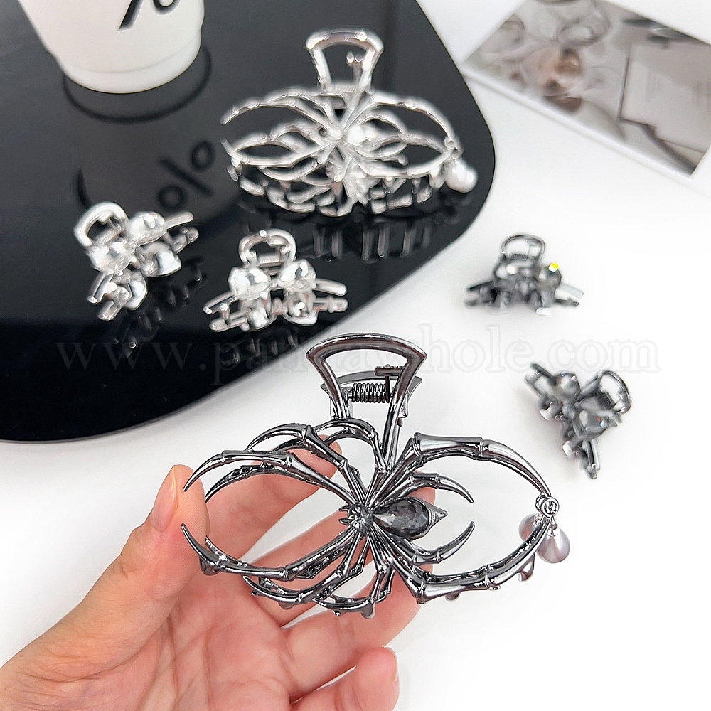 • Платина Сплав клипы коготь волос, паук, платина, 82x55 мм