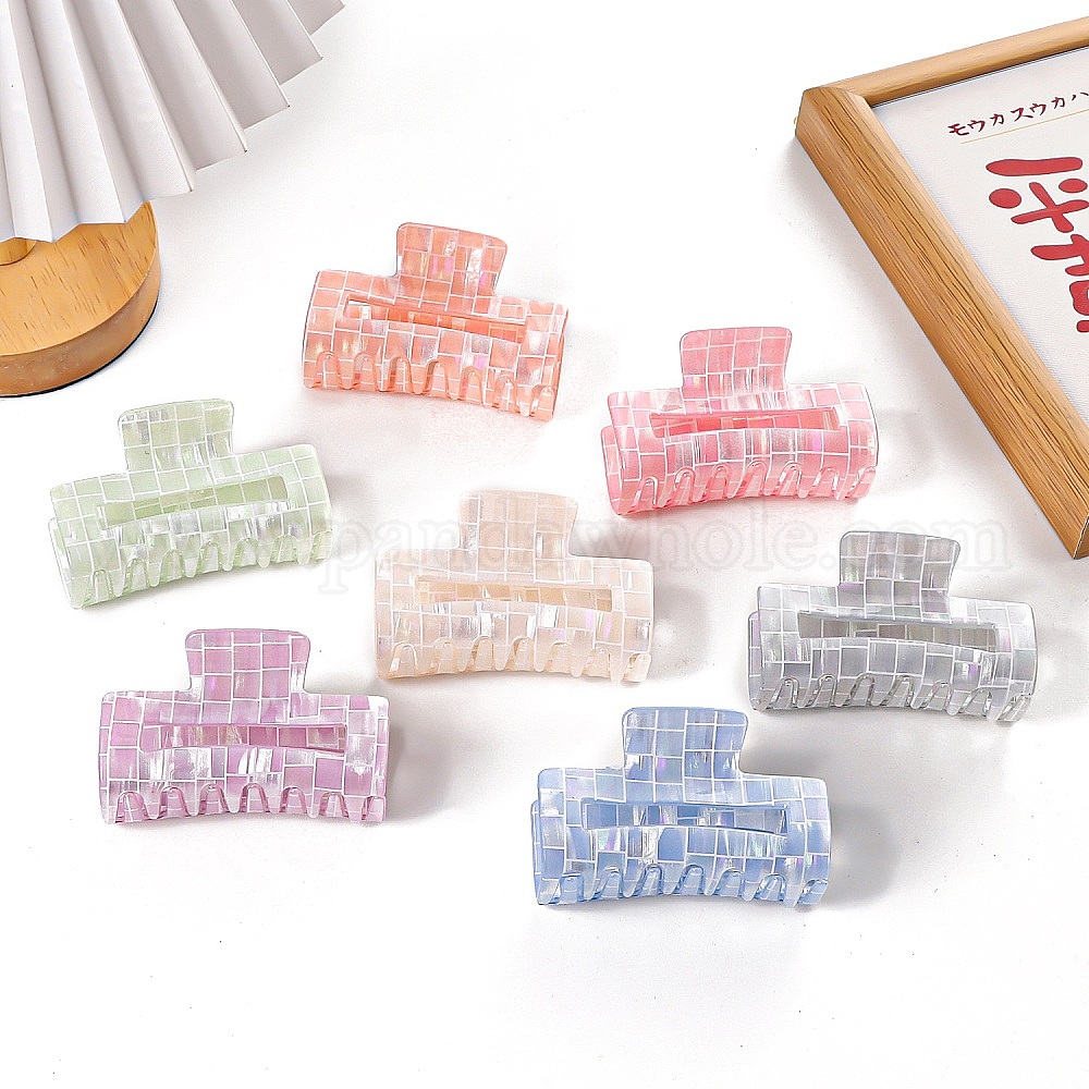 • Бледно-Розовый Заколки для волос из пвх, прямоугольные, розовый жемчуг, 82x43x42 мм