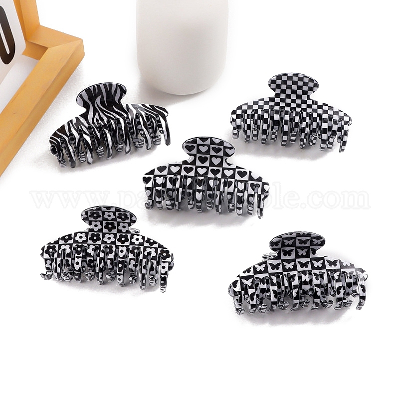 • Tartan Черные заколки-коготки из ПВХ, шотландка, 91x50x48 мм
