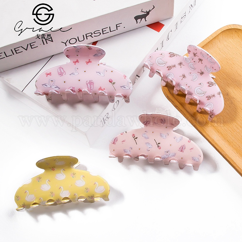 • Розовый Заколки для волос из пвх, туманная роза, 91x42 мм