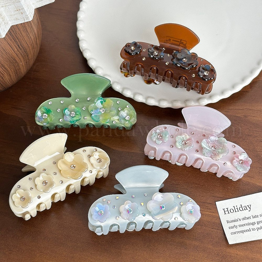 Заколки для волос в форме когтей из ацетата целлюлозы с цветами, аксессуары для волос для женщин и девочек