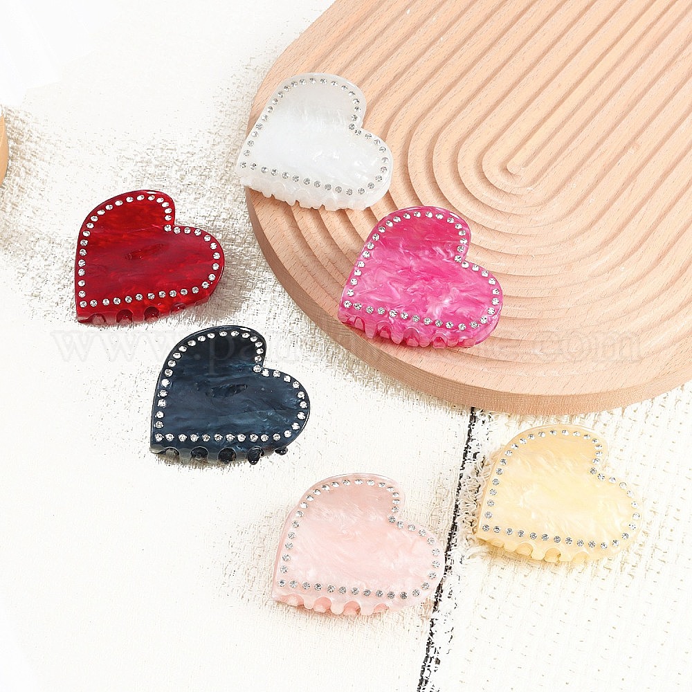 Акриловые коготь заколки, со стразами, аксессуары для волос для женщин и девочек, сердце