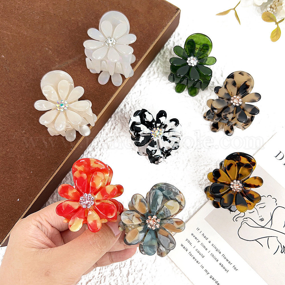 Заколки для волос в форме когтей из ацетата целлюлозы, аксессуары для волос со стразами для женщин и девочек, цветок