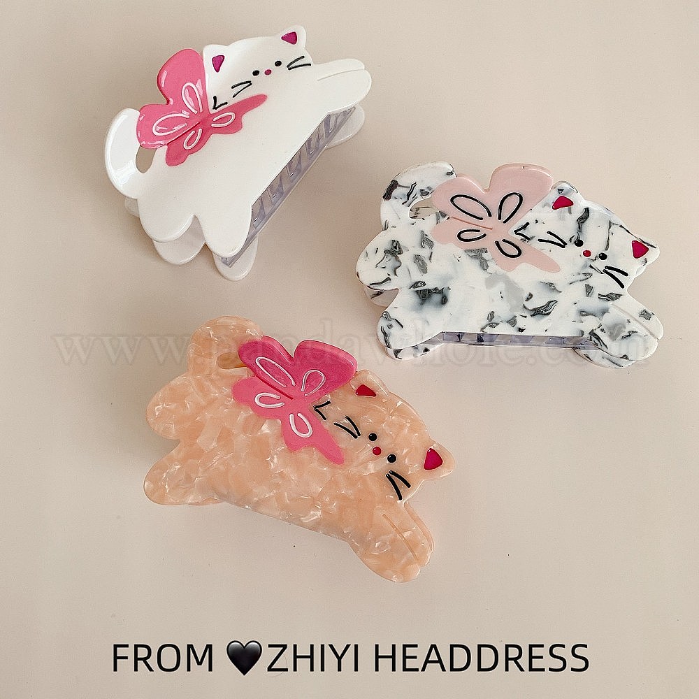 • Белый Заколки для волос в форме когтей из ацетата целлюлозы, аксессуары для волос для женщин и девочек, форма кошки, белые, 84x51 мм