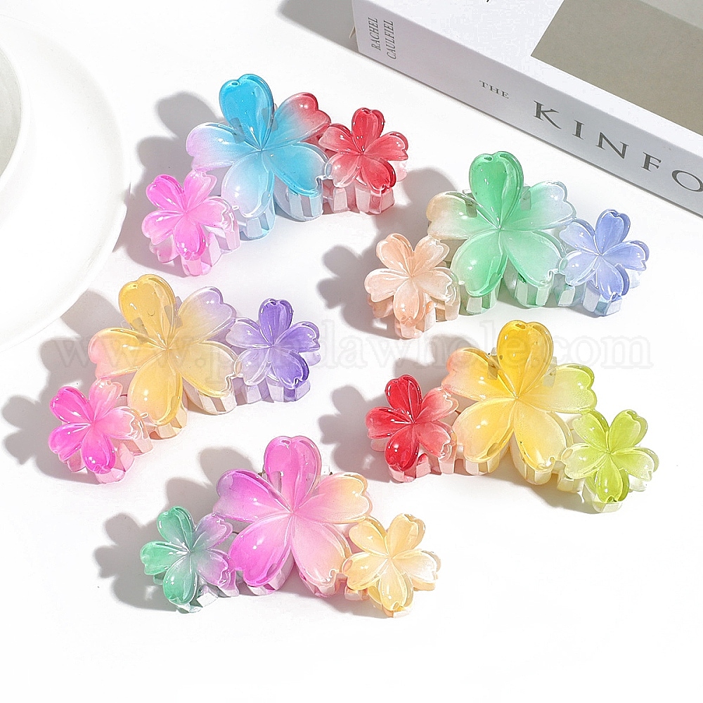 • Разноцветный Заколки для волос с когтями из смолы, аксессуары для волос для женщин и девочек, цветок, красочный, 50x93 мм