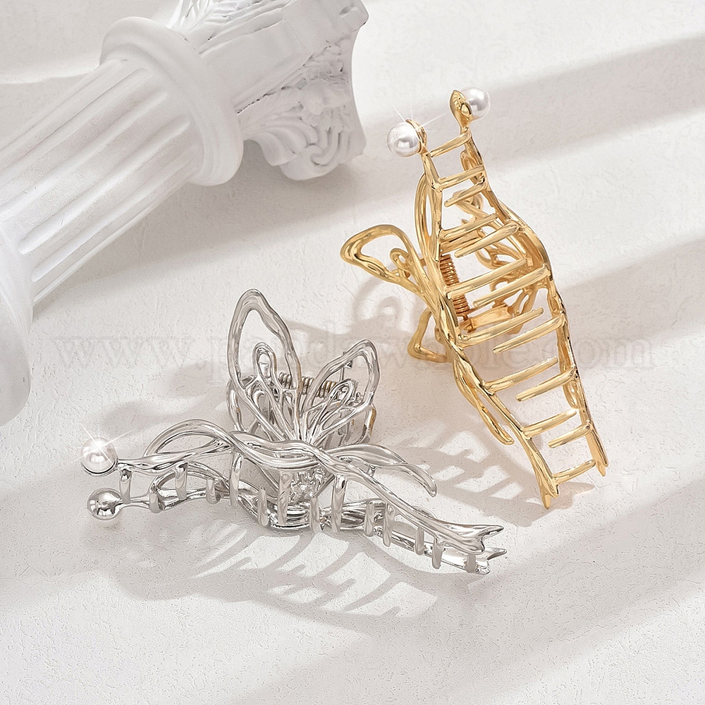 Металлические заколки-коготь, аксессуары для волос для женщин и девочек, с имитацией жемчужина бисера, бабочка