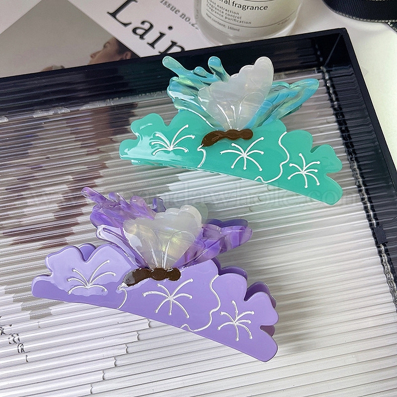 Заколки для волос в форме когтей из ацетата целлюлозы, цветок с бабочкой