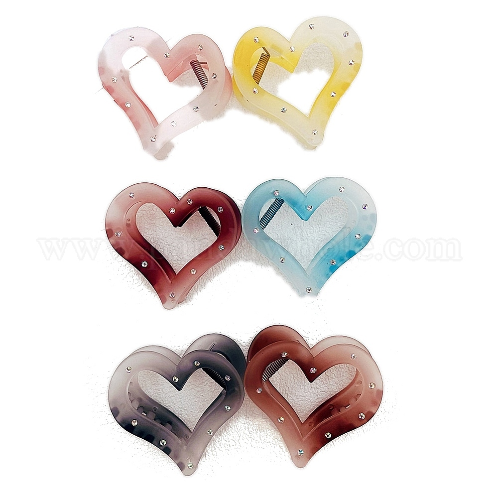 Заколки-коготки из смолы со стразами, сердце