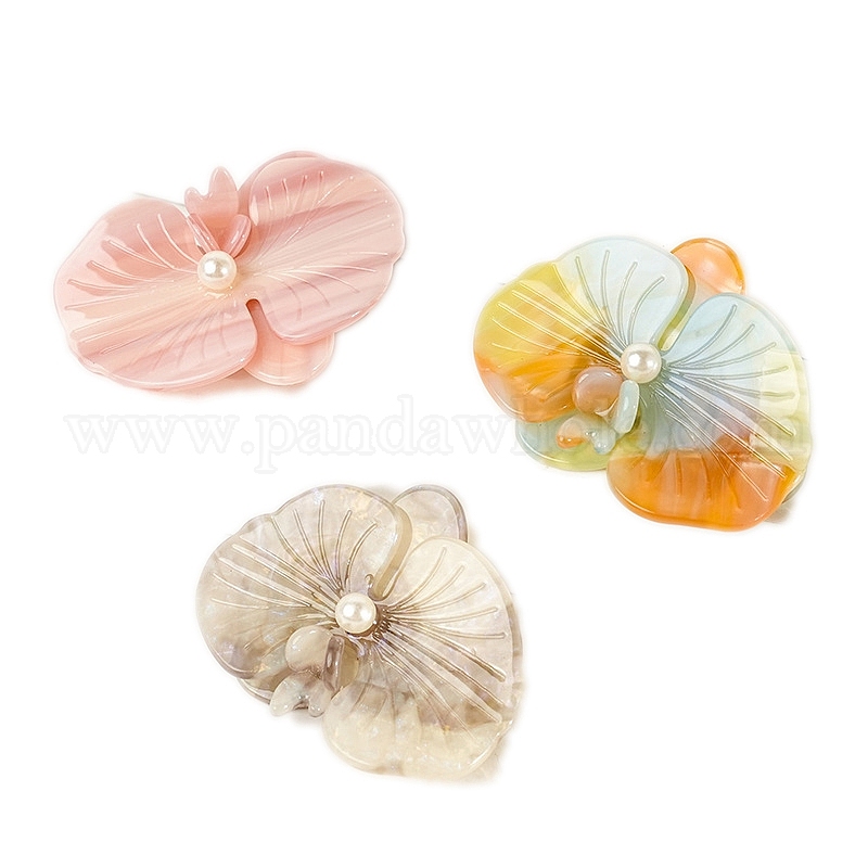 Акриловые с пластиковыми жемчужными заколками-коготками, орхидеи-мотыльки