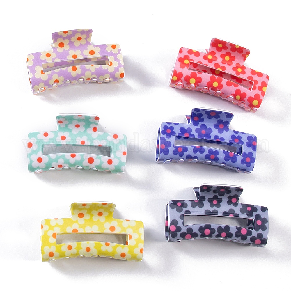 12 шт 6 цвета цветочный узор ПВХ пластиковые заколки-коготь для волос, аксессуары для волос для женщин и девочек, прямоугольные